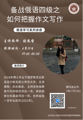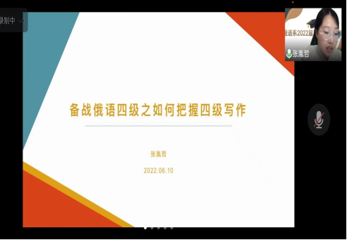 张胤哲老师通过对俄语四级答题技巧及历年真题进行讲解,并通过不同类型作文的写作技巧和素材带领同学们遨游俄语学习海洋。