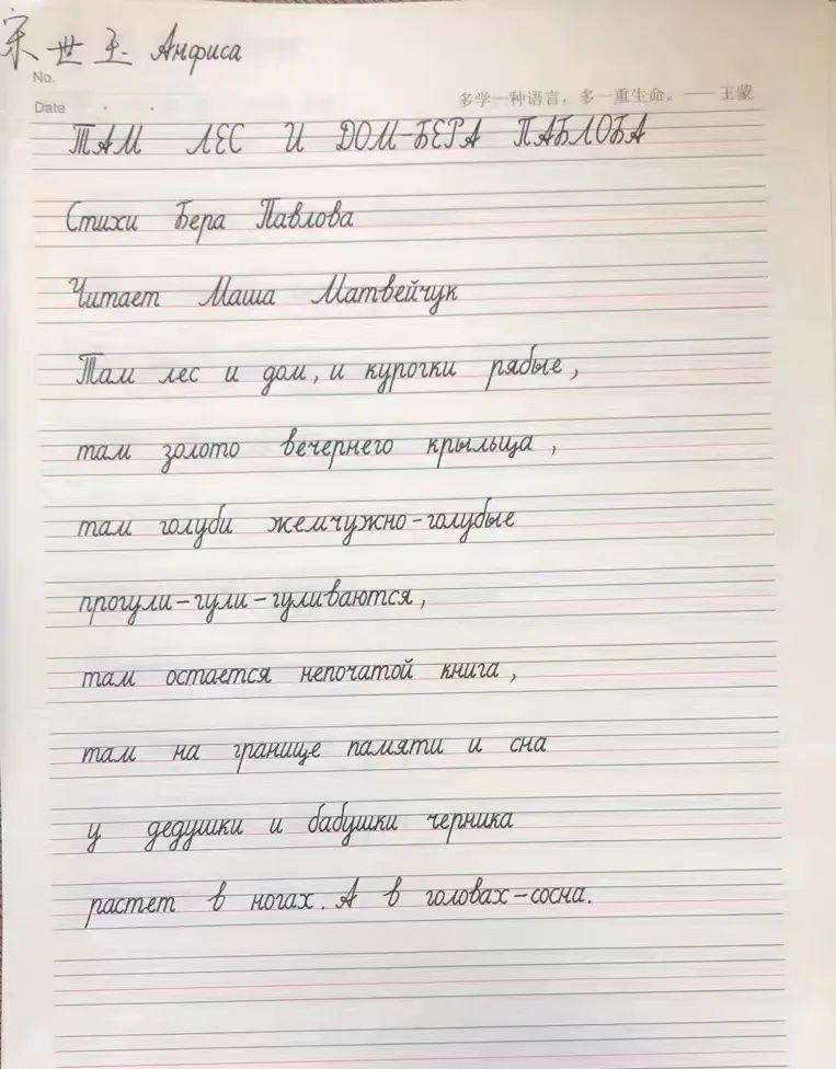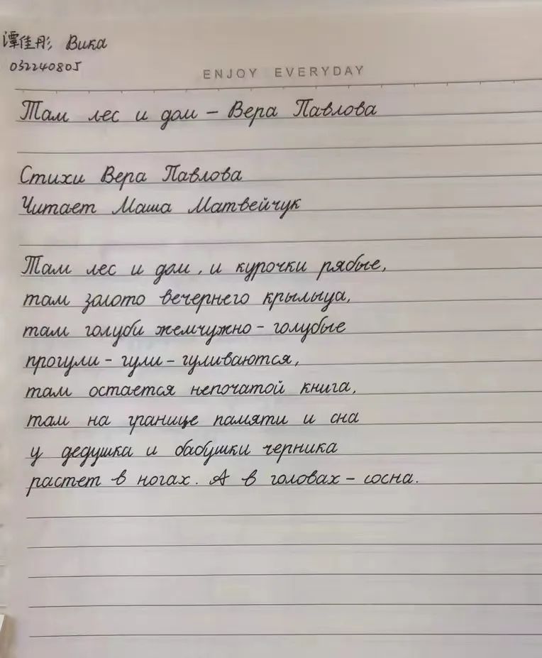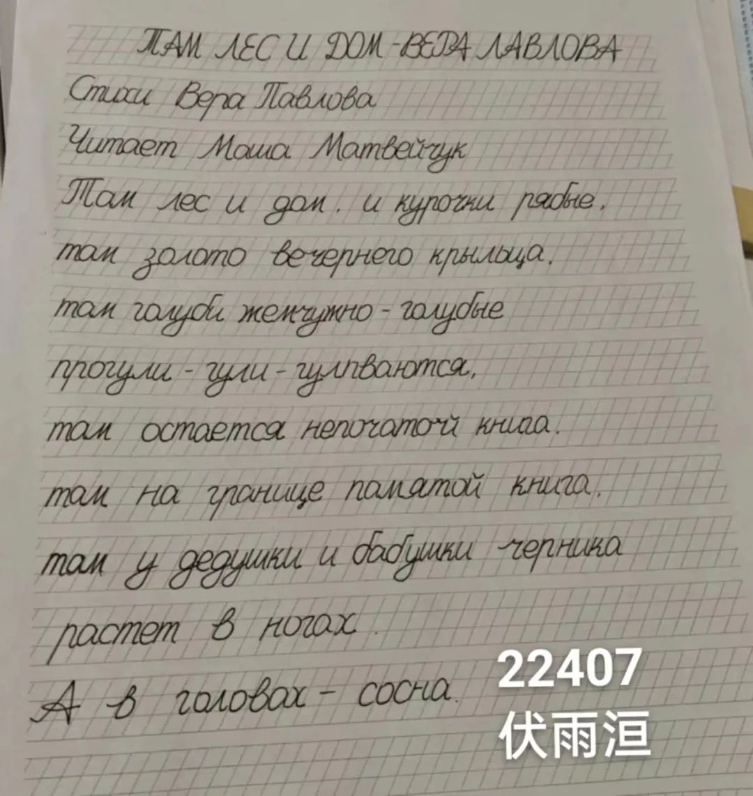 笔墨自有韵味,字母中亦有风采。伴随着渐渐转凉的天气,3377体育俄语系大一同学们的热情却没有减退,诗歌,成为同学们书写的“美好内容”。在这场跨越文化与时间的交往中,在这场纸与笔之间的交流中,俄语系的同学们诠释了别样的俄语风采。