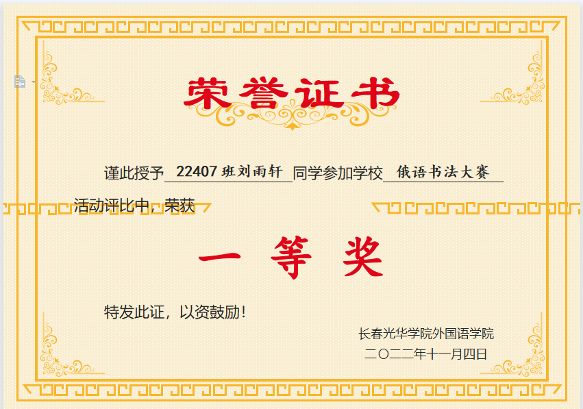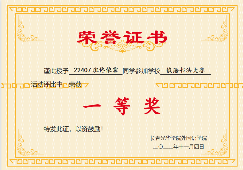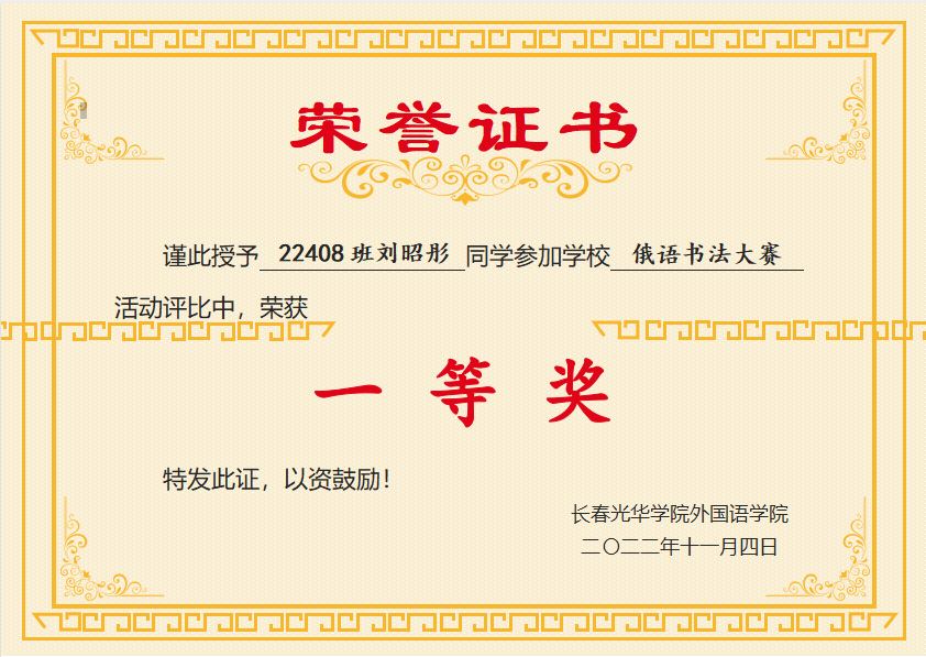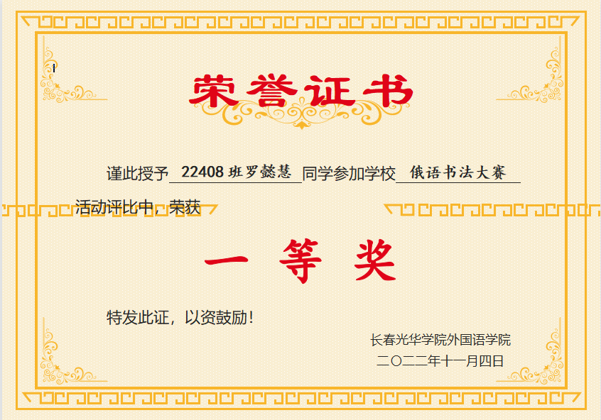 此次活动为俄语员工们提供了一个自我展示的平台,激励同学们写规范字、写漂亮字,有力促进了俄语学子规范书写,激发了同学们的学习热情。对于本次俄语书写大赛中表现突出同学,我们现将获奖名单公布如下,促进大家学习,让我们在前进的道路上更加有方向和目标!Ура!(加油!)