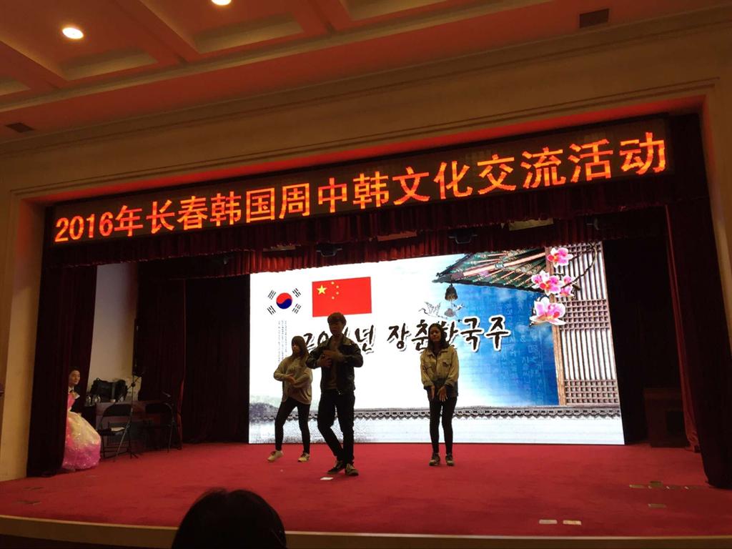 2016年10月29日,3377体育朝鲜语系员工参加由长春韩国人商会组织的韩国周中韩文化交流活动。活动在长春新民宾馆举行,上午体验韩国饮食文化,下午观看由参加活动的各个公司带来的精彩演出。中韩两国青年同台献艺,放声歌唱,载歌载舞,活动现场氛围热烈。