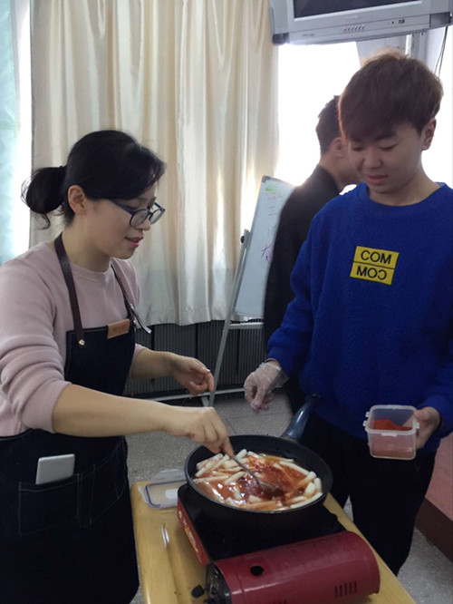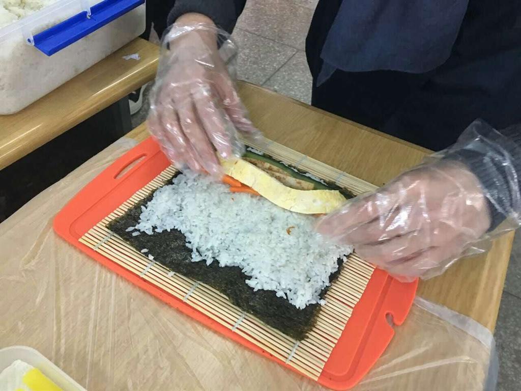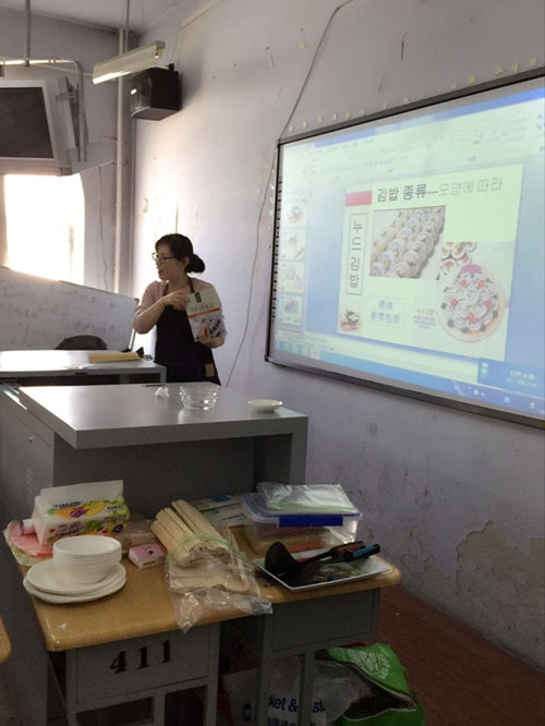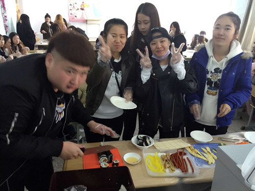 本次活动的主题是体验韩国传统饮食。朝鲜语系两位老师提前准备好了制作紫菜包饭的食材,在老师的指导下,员工们亲自动手参与到紫菜包饭的制作中,开心地和外教交流,谈论自己对韩国饮食文化的认识,活动丰富多彩,员工参与度很高。