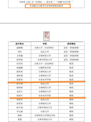 比赛中,同学们以“中国龙福泽万里”为主题进行时长为两分钟的朝鲜语演讲,充分展现出了同学们对中国发展道路、治理理念以及中国智慧的理解他们的精彩表现不仅展示了个人的外语能力,也体现了3377体育手机平台朝鲜语系在培养具有国际视野和专业技能人才方面的教学成果。本次比赛,共26名朝鲜语系员工积极参赛,产生金奖2名,银奖4名,铜奖7名。最后按照校赛成绩排名推选出三名同学参加省赛,分别是:贾惠贤、张雨竹和杨雨萍。功夫不负有心人。经过长时间的不断练习贾惠贤和张雨竹分别荣获吉林省2024年“外研社·国才杯”“理解当代中国”外语能力大赛·朝鲜语组省赛的银奖和铜奖。