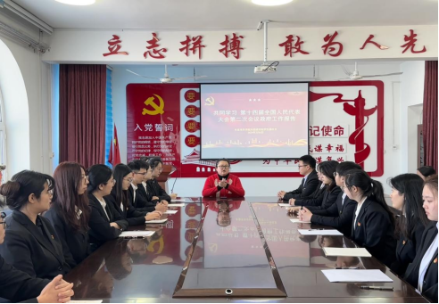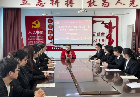 最后,员工团总支书记李苏老师总结强调:“ 新时代青年生逢其时、前景远大、重任在肩。在政府工作报告里,各项成绩令人欣喜,美好蓝图令人憧憬,而困难挑战不但没有让我们畏缩,反而让我们更加清醒、斗志昂扬地向前进。我们也应肩负起责任,奉献青春力量,积极参与社会建设,为实现共同富裕和社会和谐稳定贡献自己的力量,在实现中国式现代化与民族复兴伟业的进程中积极奋进、不懈奋斗!”