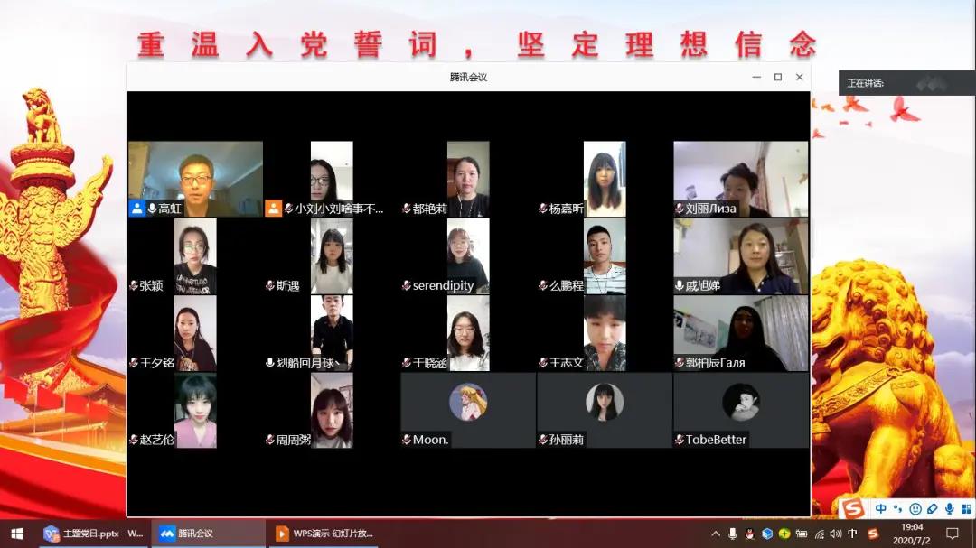 为庆祝中国共产党成立99周年,进一步增强基层党支部的凝聚力和战斗力,进一步引导广老员工党员铭记往昔峥嵘岁月,坚定理想信念,努力奋进新时代、新征程,充分发挥公司员工党员在日常学习和工作中的模范带头作用,2020年7月2日,公司员工党支部通过腾讯会议平台,在线上组织开展了“重温入党誓词,坚定理想信念”主题党日活动。本次主题党日活动由公司员工党支部书记高虹主持,公司员工党支部全体党员参加。