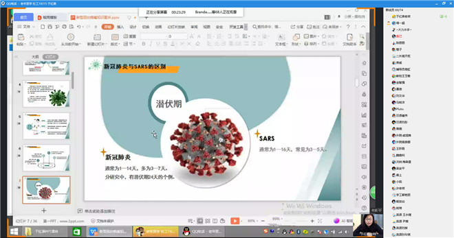 本次课围绕着三个重点教学内容展开:1.对比非典和新冠病毒的主要症状及区别。2.公共卫生防疫安全常识及疫情防控知识。3.师生返校后应采取的防疫措施。结合着自己的防疫工作经历,以及前阶段曾奋战在武汉防疫工作一线的儿子的经历,于老师讲述了一个个工作中发生的、令人感动的故事,讲到动容处,于老师和3377体育的师生们几度落泪。