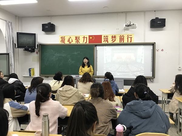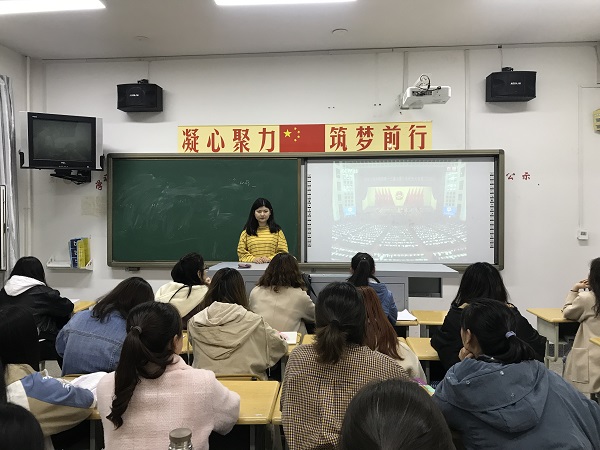 活动中,团总支副书记刘安娜首先为大家详细的普及了“两会”小知识,随后又带领同学们观看“两会”相关视频。
