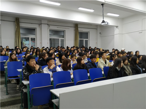 最后他以“让青春在奋斗与奉献中绽放光彩”作为结束语,希望同学们能够提前规划自己的老员工活,积极参加各种社会实践,在奉献社会的同时,不断完善自己、提高自己。