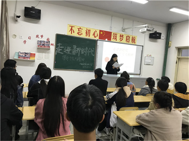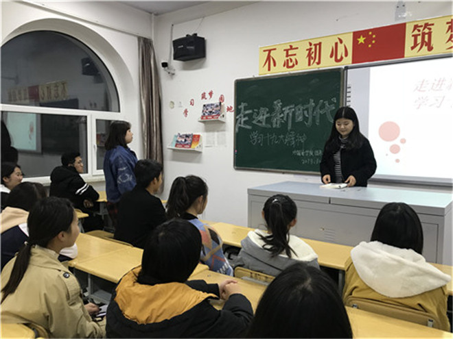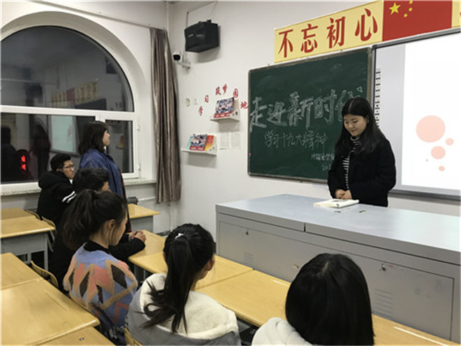 刘安娜强调,学习贯彻十九大精神是当前和今后一个时期全党全国的一项重要任务,作为外院学子,我们更要担当起作为新时代中国特色社会主义接班人的职责,这更要求我们在思想上、行动上保持高度的政治自觉,将十九大精神的学习同自己的实际行动、日常行为相结合,注重提升自身知识储备。