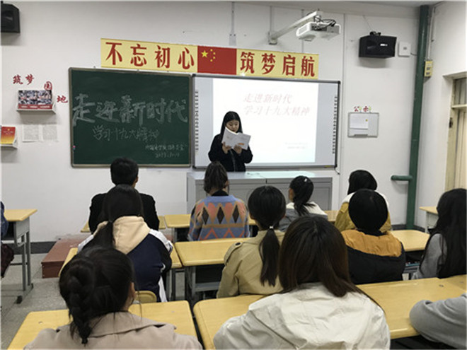 为进一步深入学习宣传贯彻党的十九大精神,加强对十九大主要内容的认识运用,牢固树立“四个意识”,坚定理想信念,公司团委10月11日于一教402举办了学习十九大精神交流座谈会,参加此次活动的有团总支副书记刘安娜、团总支部长及部分大一新生。