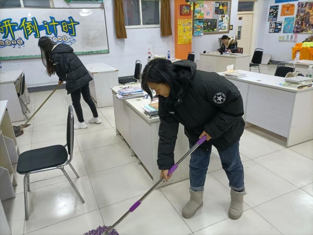 在“贴牌”仪式结束后,公司员工党支部积极落实卫生工作标准,组织员工党员认真、全面地清扫各个党员责任区,做到卫生无死角,为在课堂认真学习的同学以及在寝室自习室努力奋斗学习的同学提供了干净舒适的学习环境。