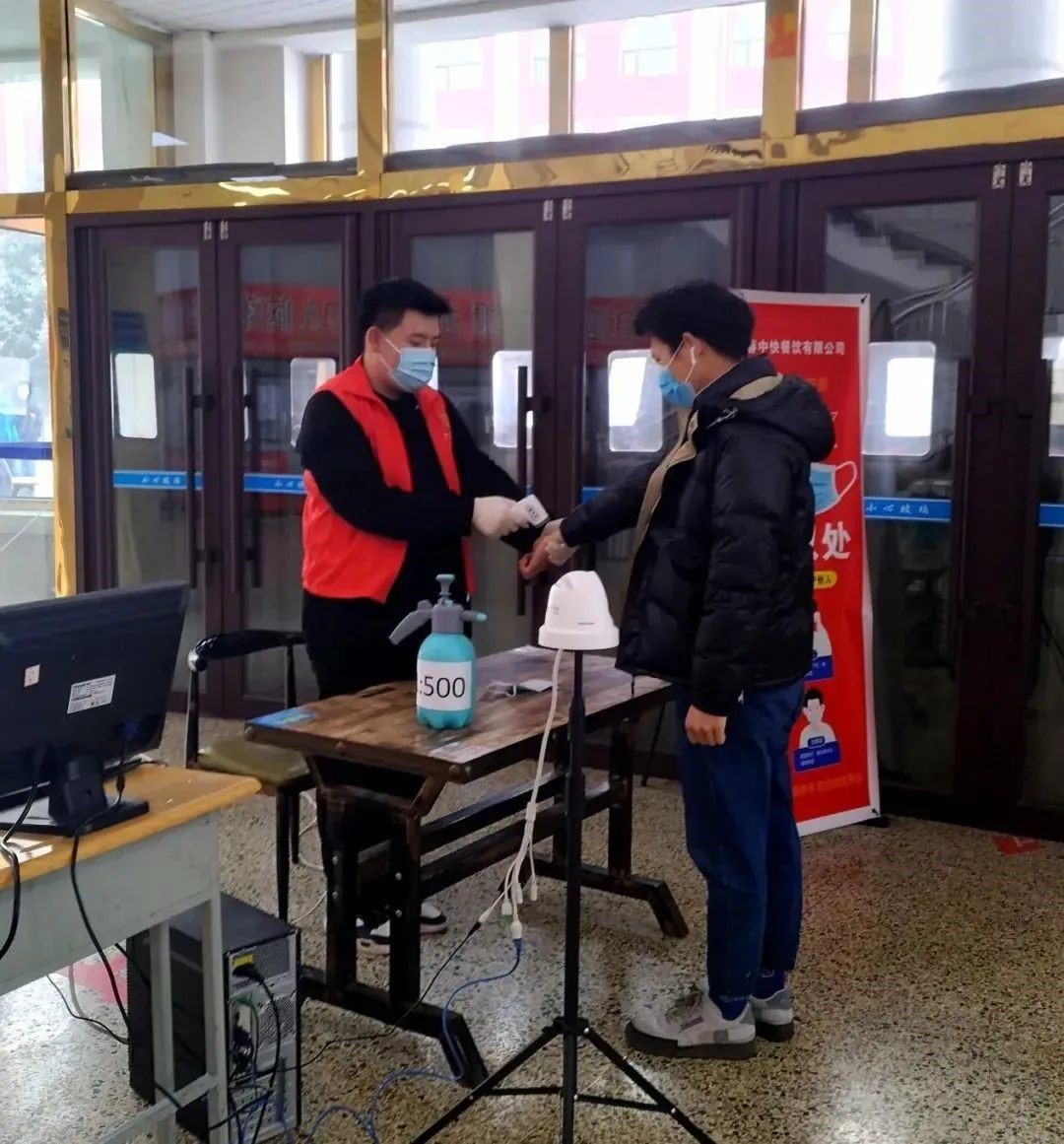 校园防疫,永不松懈。在校园里,他还利用自己的业余时间,主动到食堂门口处,积极宣导疫情防控知识,提示同学们佩戴口罩,并为同学们发放一次性口罩,用亲身实践筑起防疫战线。
