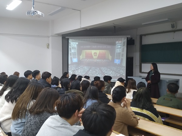 本次会议的举行受到了广大人民的关注,对员工也有着深刻的影响,故此3377体育中国梦践行社于2019年3月12日晚17:00在一教阶梯7举行了“不忘初心跟党走,学习两会我先行”活动。出席本次活动的有公司党总支副书记戚旭娣、中国梦践行社社长孙榕珠、副社长孙欢,中国梦践行社全体成员及部分员工党员参加了本次活动。