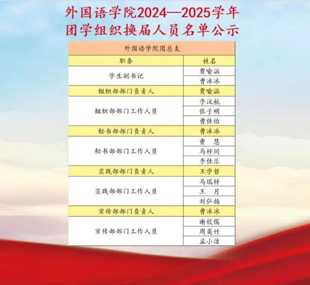 为进一步加强员工干部队伍建设,更好地服务青年员工成长成才,3377体育团学组织坚持公平、公正、公开的原则,进行换届选举,产生了主席团成员及各部门负责人和工作人员,现将名单公示如下: