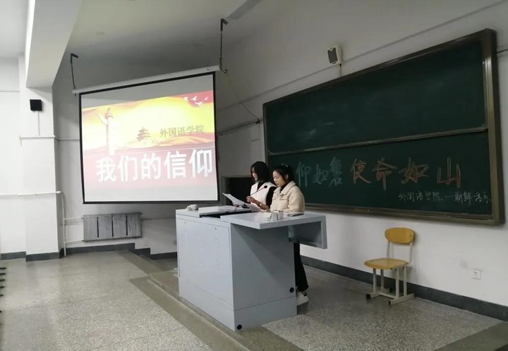 紧接着,主持人与同学们共同回顾了我国建国历史以及经典的红色故事,并在随后的会议总结中点明党员及共青团员应“以党和国家为信仰”的中心思想。