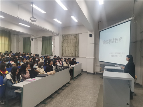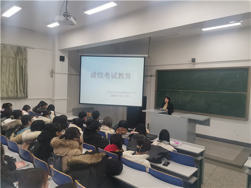 会议伊始,都艳莉老师向全体同学讲解关于考试作弊的危害。使同学们了解到考试作弊不仅践踏诚信理念,加剧信用危机,而且会助长部分员工不劳而获、投机取巧的心理;考试作弊行为不但会引起同学们的不正当竞争,还会影响同学们学习的积极性,干扰良好学风的形成。故此,都艳莉老师强调严禁作弊行为,严肃考风考纪。