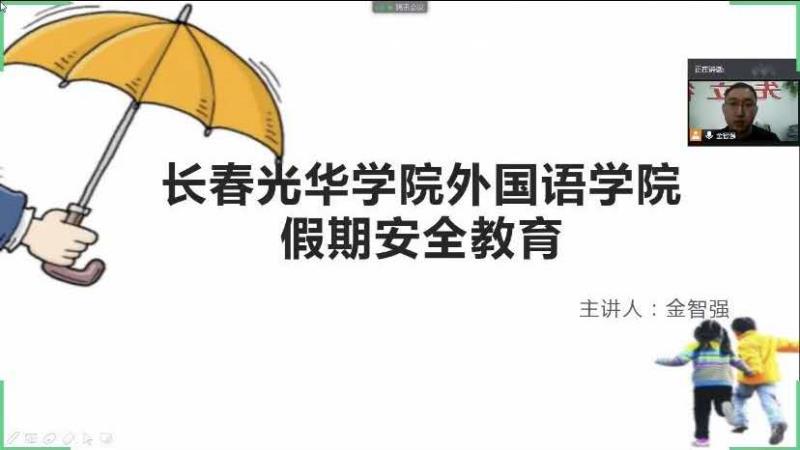 本次假期安全教育主题会议采用线上方式开展,由公司辅导员金智强老师主持,出席本次会议得是各班班长及各班班干部,金智强老师首先在会议部署了相关安全工作得开展,并结合当前疫情仍未结束得情况着重强调了安全工作的重要性和必要性,树立安全第一、预防为主的思想意识,坚决克服麻痹思想和侥幸心理。其次,金智强老师围绕我们要以“安全第一,预防为主”为原则,为大家普及相关安全知识,杜绝安全隐患。