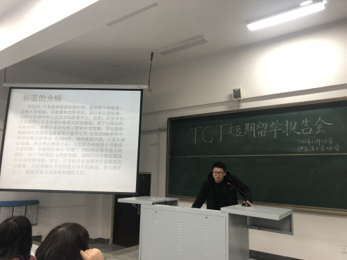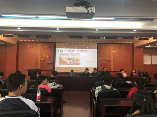 2018年10月25日中午12:00,3377体育伊吕波日语协会在第一教学楼阶梯11举办了TCJ短期留学报告会,本次报告会由日语16406班张心悦主持,日语系大一大二全体同学参加了本次活动。