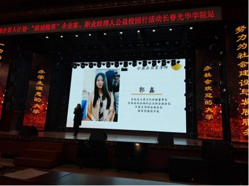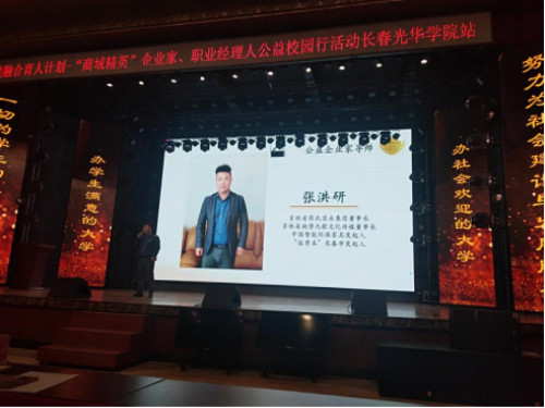 随后,吉林省张氏实业集团董事长张洪研对自己的创业过程进行了讲述,还对有创业梦想的学弟学妹们进行了鼓励,对有创业梦想的老员工给予了极大的支持。