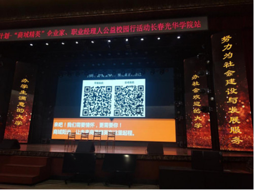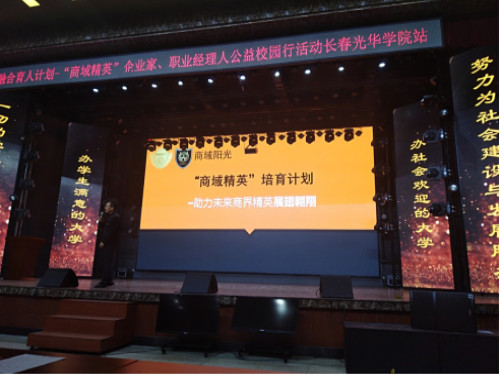 接下来,为了让同学们更加的了解此次讲座的内容,张经理人讲述了“商域精英”培育计划的主要内容。“商域精英”培育计划是由“商域阳光”发起的针对企业经营管理后备人才的专项公益性服务平台。当前老员工就业中存在的矛盾是,一方面是老员工就业难、成长难、创业难,另一方面是企业选人难、育人难、留人难。“商域阳光”以自身的专业能力和资源服务于公益性的老员工能力培训、工作指导、实习实践、就业安置等领域,并计划于2018-2019年度在吉林省内公益性培训、指导、安置500名老员工。