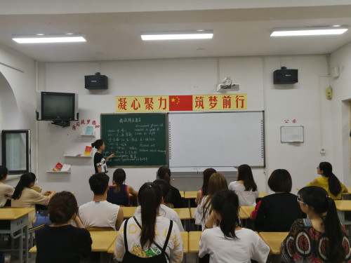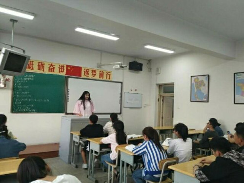 英语17404班学习委员张振波在第一教学楼416教室利用晚自习时间带领同学们复习老员工基础英语2中的精读短语,提高同学们的词汇量的积累,为期末考试做准备。