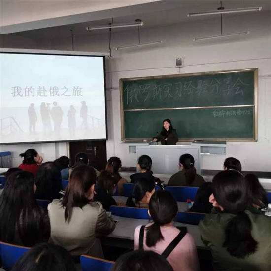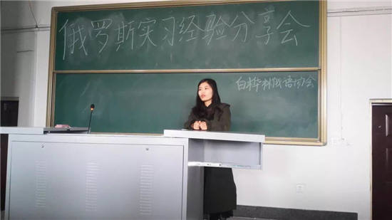 为让大一大二员工更加了解关于赴俄留学的相关事宜,2018年4月3日中午,“白桦林”俄语协会在一教阶梯十一教室,举行了俄罗斯实习经验分享会,俄语系大四员工李向楠为大一大二全体员工讲述了她的俄罗斯实习之旅。