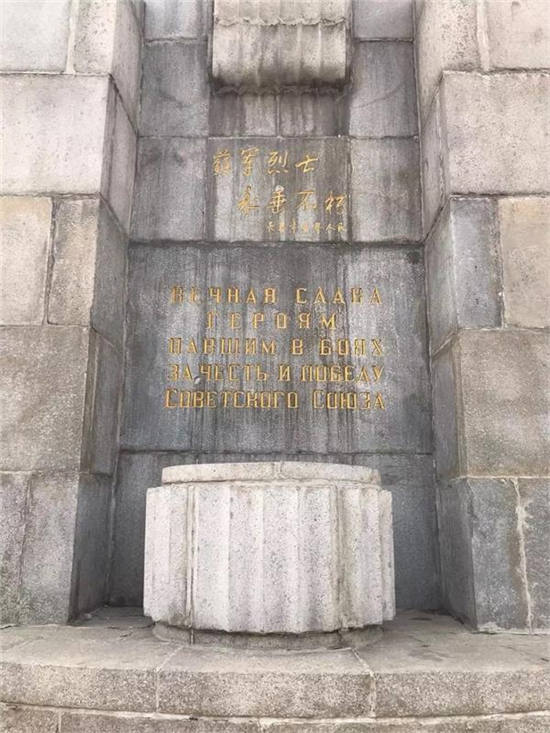 进入场内一座巨大的纪念塔映入眼帘,纪念塔上刻有“苏军烈士,永垂不朽”几个刚劲有力的大字,在周围郁郁葱葱的翠柏的衬托下,显得格外醒目。