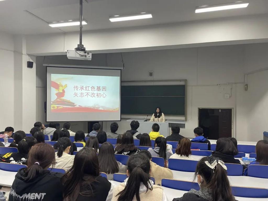 活动伊始,主持人向同学们讲述了作为新一代的接班人,我们应坚定信念从容的走向明天,走向未来;继承先辈们的光荣传统,为实现中华民族复兴的伟大梦想而努力奋斗。在实现中华民族伟大复兴的征程中,我们要构筑牢固的思想防线,坚持“红色基因代代传”的宗旨意识。