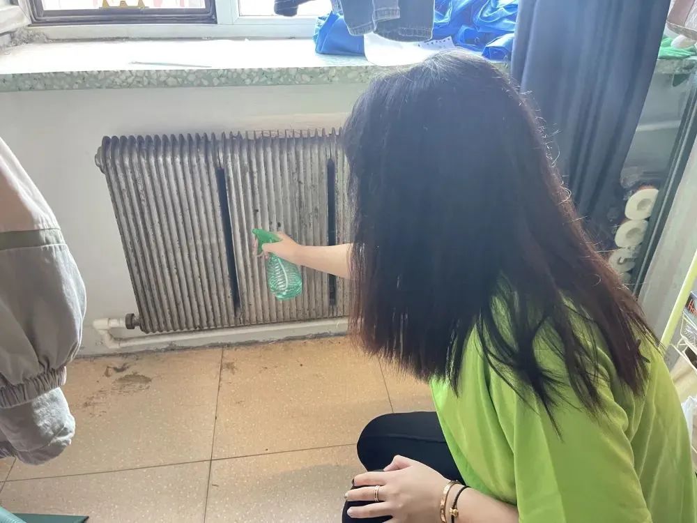对寝室的消杀是对员工安全负责的行为,寝室环境的安全关系到宿舍生活的质量,消杀人员拿着喷壶对着寝室内外进行喷洒,不放过宿舍内的每一寸角落。消杀人员秉持着认真工作的态度和用心为大家服务的想法,严格按照正规消毒的卫生标准进行消杀,并对楼道,卫生间进行反复消杀,达到营造安全寝室环境的目的。