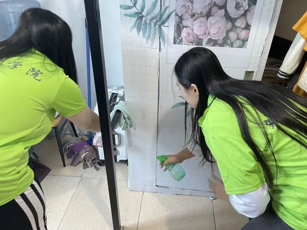 消毒过程中,志愿者们严格按照防疫要求,做到全覆盖、无死角,确保消毒彻底。做好消毒记录并提醒同学及时开窗通风,确保同学们进入宿舍安全。并督促员工佩戴口罩、不串寝室、按时作息、做好自我防护措施,切实守好疫情防控“安全线”。