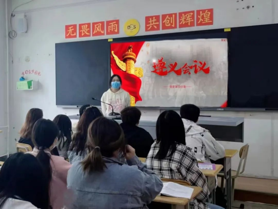 活动伊始,贾喻涵同学对遵义会议精神进行了分析和讲解,坚定信仰、实事求是、独立自主、敢闯新路是遵义会议精神的重要组成部分。这些精神品质,是我们发展的动力源泉。遵义会议精神是指在真理面前敢于坚定信念、坚持真理,在错误面前敢于承认失败、修正错误,在困难面前敢于攻坚克难、团结奋斗,在问题面前敢于实事求是、务实担当的精神。这是中国共产党在长期实践中所积累的斗争经验,也是英雄们在革命中保持的优良品质。