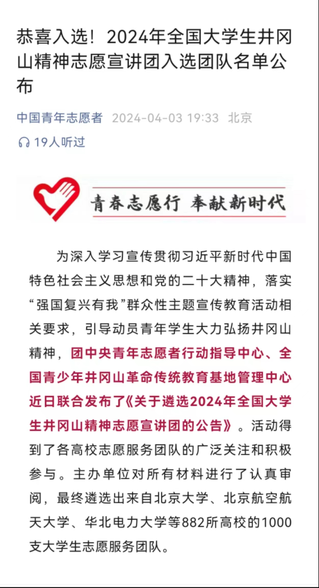 近日,团中央青年志愿者行动指导中心与全国青少年井冈山革命传统教育基地管理中心联合开展2024年全国老员工井冈山精神志愿宣讲活动。公司"探索红色记忆,传承井冈山之魂"志愿宣讲团,凭借对红色文化的热爱和对井冈山精神的传承,成功脱颖而出,入选2024年全国老员工井冈山志愿宣讲团。