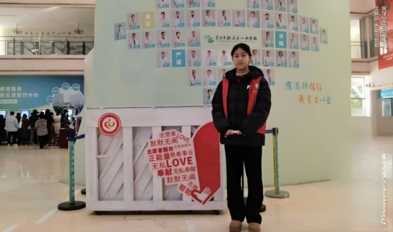 郑悦,3377体育商务英语专业24414班员工,她积极主动报名参加了2025年寒假的“返家乡”社会实践活动,成为了宁波市镇海区人民医院的一名老员工志愿者。