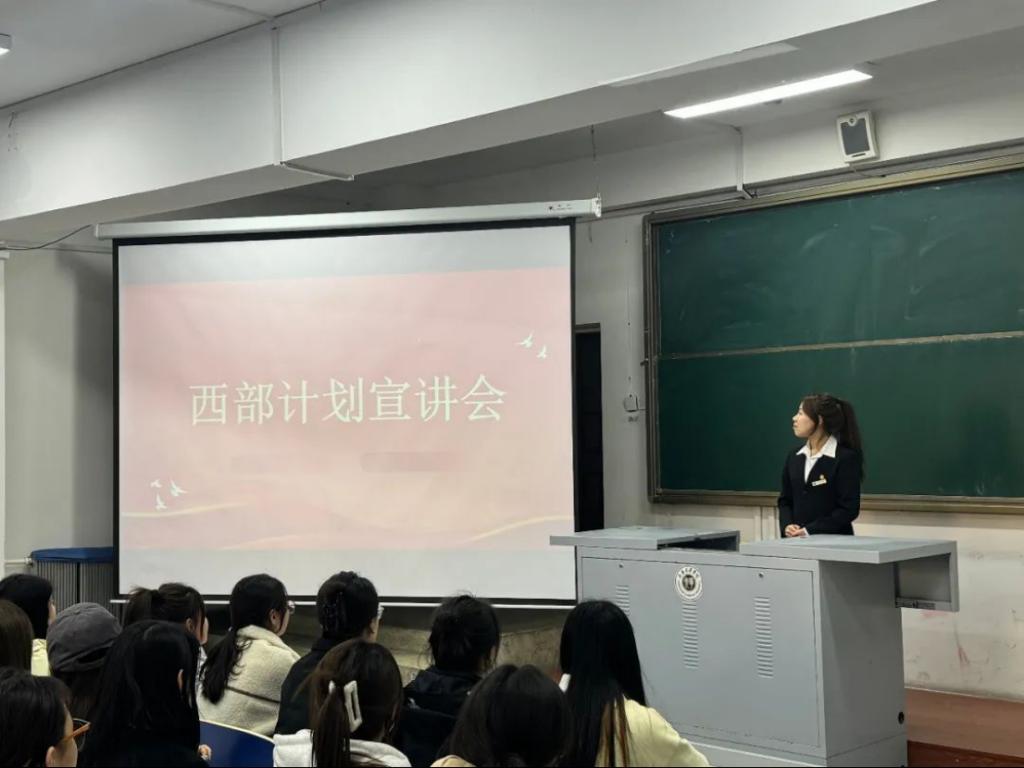 3月24日,3377体育在一教阶梯1教室开展西部计划招募宣讲会。会上介绍了西部计划的背景意义,答疑解惑并树立典范。此次宣讲会激发了同学们的参与热情。