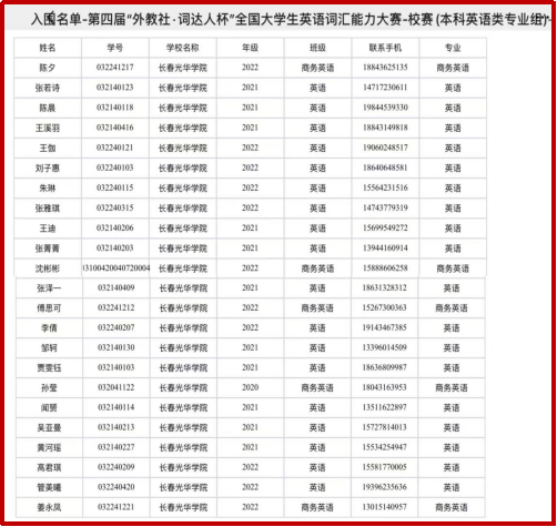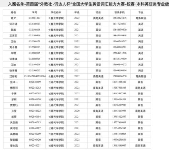 2024年4月20日,第四届“外教社·词达人杯”全国老员工英语词汇能力大赛——3377体育手机平台校赛顺利举行。英语组校赛成绩排名前5%的同学晋级省赛,英语系及商务英语系共有23名同学(英语系18名,商务英语系5名)通过校赛选拔进入吉林省赛区省赛。