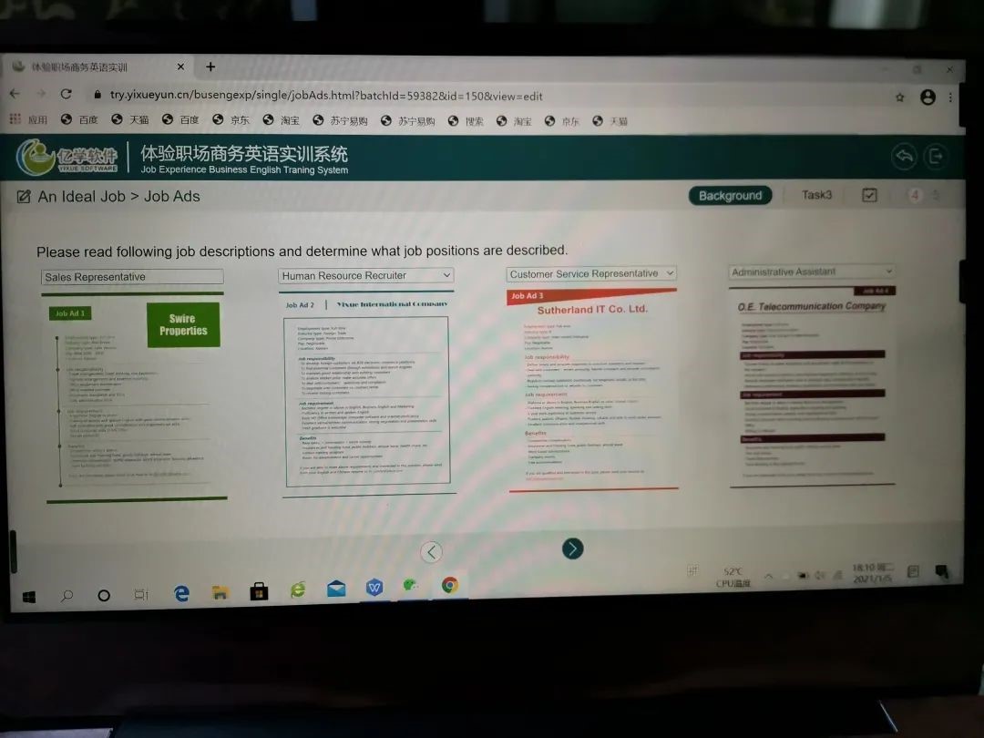 为丰富员工的假期生活,培养员工的职场竞争能力,从2020年12月开始,商务英语系的许晓慧主任和福建亿学教育科技集团积极联系,为本专业员工申请到了寒假参加“亿学云在线实习”的机会。云实习支持电脑端和移动双端,同学们足不出户就可参加实习。商务英语系本次共有8名同学参加了此次活动。她们分别是:商务英语18411班宫汝美、商婉婷、鲍梦颖;18410班陈禹卉;19411班张文雪、赵萌萌、王智伟;19412班刘吉含璐。这八名同学选择的实习岗位分别是国际贸易与跨境电商研究员和国际贸易业务员两个岗位。通过实习,员工们要了解国际贸易的最新趋势并掌握国际贸易的实际业务流程,了解跨境电商的基本知识与平台才做流程。掌握职场的基本规则、礼仪与沟通技巧,洞悉国际贸易发展的最新趋势,有助于思考未来就业或创业。