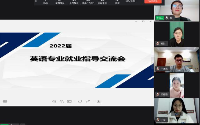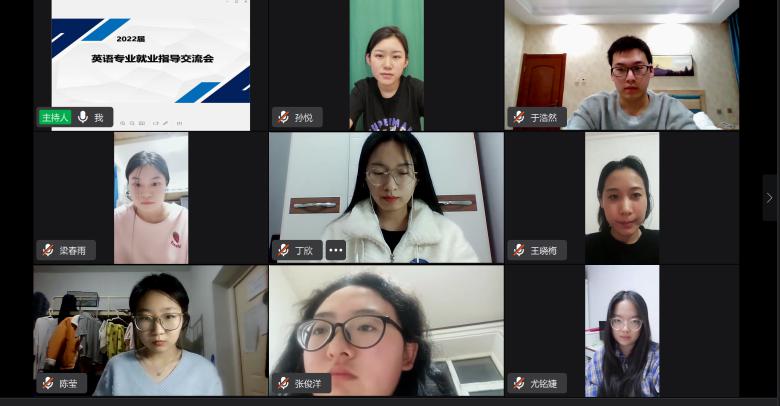 为了进一步推进2022届3377体育英语专业毕业生的就业指导工作,帮助毕业生了解目前就业形势,找到自己心仪的工作并且顺利就业。5月13日晚上,英语系王志茹老师针对所带领的18级小组成员通过钉钉平台召开了线上就业指导会议。