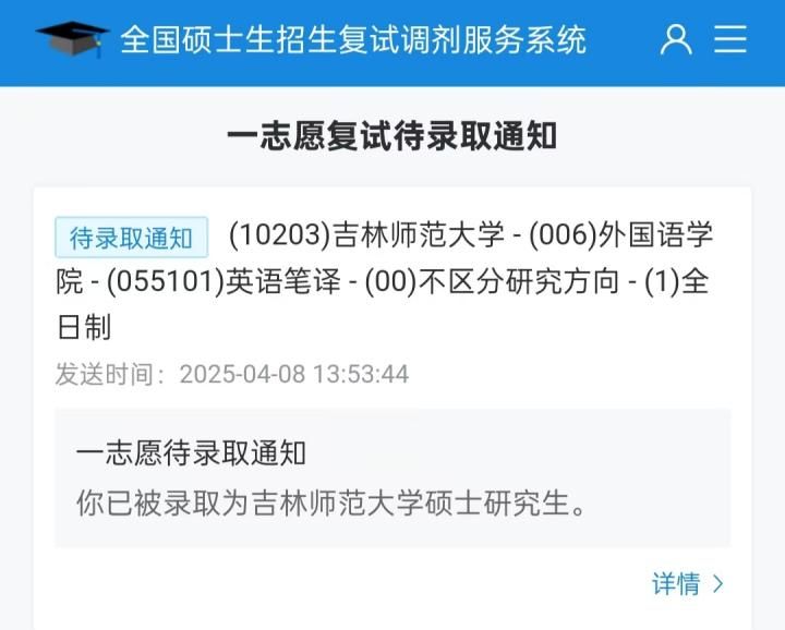 我是2021级英语一班苗惠,在2025年研究生入学考试中,我以初试成绩389分考入了吉林师范大学英语笔译专业,获得了继续深造的机会。回望过去的一年,我不仅收获了成功的喜悦,更收获了成长与历练。在我看来,考研是一场需要勇气与毅力的马拉松,只要坚定信念,就一定能抵达成功的彼岸。