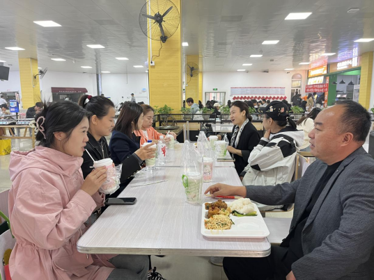 带着满满的收获与感慨,员工们与老师们移步到食堂。这里环境雅致,窗明几净,员工们与老师们围坐一堂,品尝着熟悉的味道,畅谈甚欢。吴享纯、崔佑思、陈莉莉、叶隽含、刘晓莹、李静婷等六位员工与老师们一起回顾了在母校学习生活时的点点滴滴,分享了自己目前获得的成绩和未来发展计划,感谢母校提供的优越学习环境和丰富学习资源,感谢老师们的谆谆教导和倾心付出。老师们对员工们取得的成绩表示由衷的祝贺,欢迎大家常回家看看,鼓励员工们继续努力奋斗,为母校增光添彩,为国家、社会贡献光华力量。