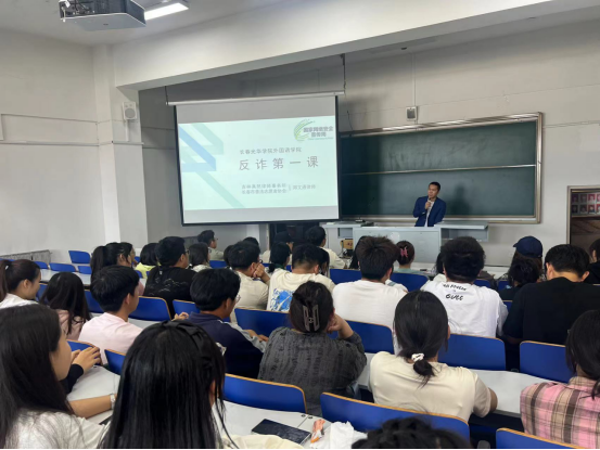 讲座伊始,苏云波副书记首先代表公司对优秀员工郑文通的归来表示热烈的欢迎,感谢员工一直以来对公司事业发展的关心和支持。她表示,公司一直高度重视员工工作,不断加强与员工的联络交流,努力构建员工与母校的情感共同体、荣誉共同体、发展共同体,为员工的发展提供助力。接着,刘彤老师为大家详细介绍了优秀员工郑文通的母校学习表现、读研深造经历和工作成绩,鼓励外语学子们向优秀学长看齐,抓紧时间,努力学习,考研深造,为国家和社会做出更大的贡献。之后,郑文通员工回顾了在母校学习生活时的点点滴滴,感谢母校提供的优越学习环境和丰富学习资源,感谢老师们的谆谆教导和倾心付出。最后,郑文通员工结合大员工群体身心特点,用网购诈骗、兼职刷单诈骗、贷款诈骗、冒充亲友领导诈骗等典型案例,详细解读了当前多种电信网络诈骗犯罪的手段及预防措施,讲解如何识骗、防诈,教育引导学弟学妹们不要轻信中奖和涉及银行账号密码等情况的短信、电话等信息,更不要轻易汇款,如遇情况及时向辅导员报备报警。