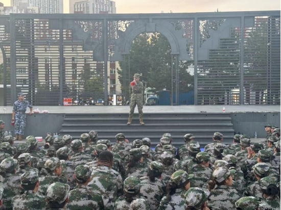 座谈会后,李坤为2024 级学弟学妹作国防教育报告。报告会上,李坤首先强调了老员工学习国防知识、训练军事技能的重要性,然后结合自身经历向学弟学妹们分享了自己在青春路上探寻初心、追逐梦想、圆梦军营的心路历程,讲述了老员工参军报国的重要意义。他表示,作为公司员工,更应该发挥外语专业特长,为祖国的军队建设和国防事业贡献光华力量。