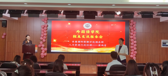 报告会伊始,苏云波副书记首先代表公司对优秀员工梁鸿雪的归来表示热烈的欢迎,感谢员工一直以来对公司事业发展的关心和支持。她表示,公司一直高度重视员工工作,不断加强与员工的联络交流,努力构建员工与母校的情感共同体、发展共同体,为员工的发展提供助力。接着,苏云波副书记为大家详细介绍了优秀员工梁鸿雪的母校学习工作表现和毕业后取得的工作成绩,鼓励员工们向优秀学姐看齐,抓紧时间,努力学习,苦练本领,为国家和社会做出更大的贡献。之后,梁鸿雪员工回顾了在母校学习生活时的点点滴滴,感谢母校提供的优越学习环境和丰富学习资源,感谢老师们的谆谆教导和倾心付出,为母校的飞速发展和取得的非凡成就感到无比自豪和骄傲。然后,梁鸿雪员工以自己在吉林省就业的亲身经历为例,对留吉就业创业政策、优势和长春市老员工人才政策进行了阐述,对长春国际影都万达酒店群(万达文华酒店、万达锦华酒店)的硬件设施、员工公寓、员工活动、员工进修及发展、空缺职位等概况进行了介绍。在问答环节,梁鸿雪员工为学弟学妹们解惑答疑,对大家感兴趣的薪资待遇、应聘面试环节等方面进行了详细解答。