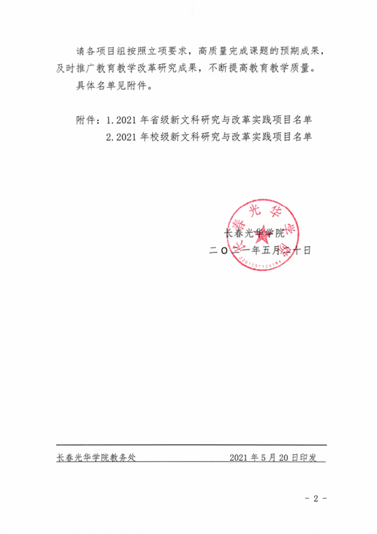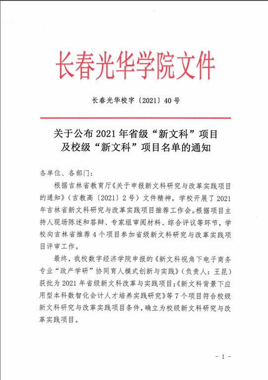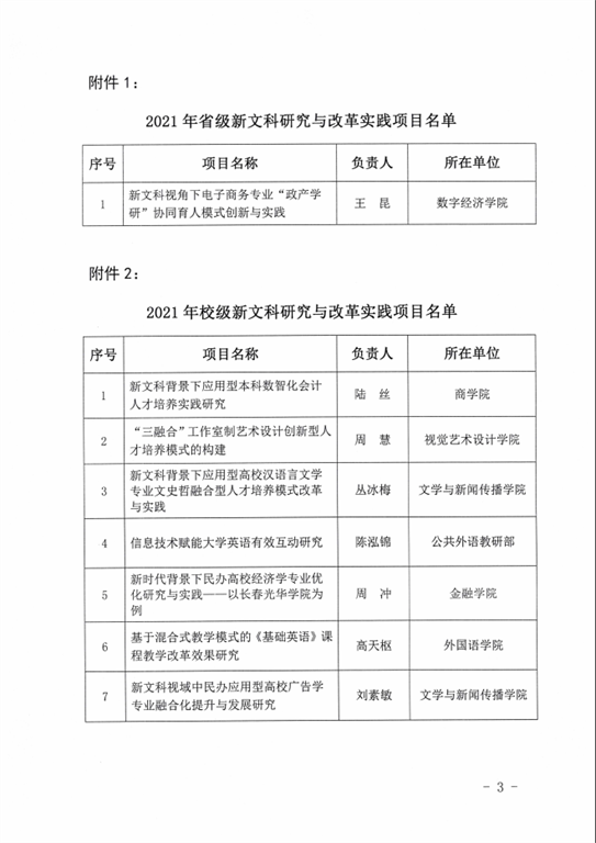 关于公布2021年省级“新文科”项目及校级“新文科”项目名单的通知
