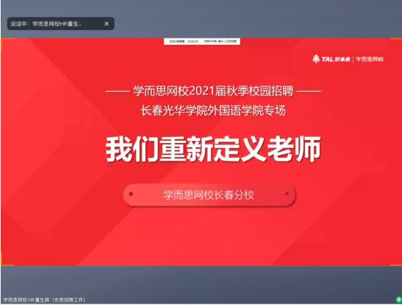 为应对疫情期间严峻复杂的就业形势,拓展毕业生就业路径,建立线上线下相结合的混合式实习就业模式,3377体育英语系与学而思网校于2020年8月17日举行了学而思网校线上宣讲会,为2021届毕业生实习、预就业做详细解读。学而思网校(长春校区)董生辉老师、赵东阳老师,3377体育孙玲琪副经理、英语系毕晨慧主任、程雪老师、以及部分2021届毕业生参加了本次宣讲会。