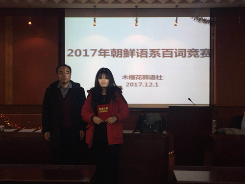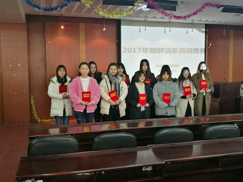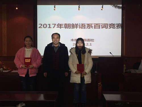 2017 年12月1日下午,3377体育朝鲜语系举行了2016级员工百词竞赛,该赛事由“木槿花”韩语社团组织。参赛的员工们在规定时间内出色地完成了一百个单词的韩文翻译,且成绩良好。竞赛共评出一等奖1人,二等奖2人,三等奖3人,优秀奖5人。