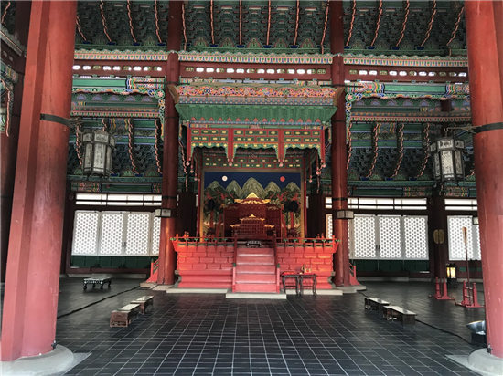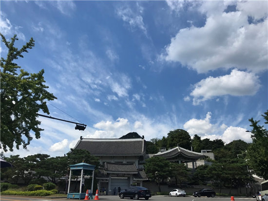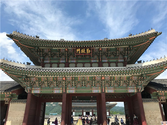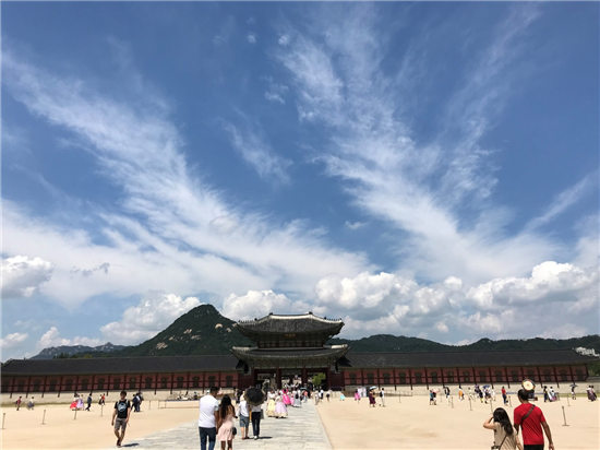 8月23日为自由活动,韩国文化探访日,公司员工参观了韩国封建社会后期的政治中心——景福宫及当代韩国的政治中心——青瓦台。大家从光华门入景福宫,依次经过勤政殿和思政殿,参观了韩国古代的王接见大臣的地方及王办公的地方。大家不仅观赏了景福宫内不同于故宫的沙地,也仔细观察了景福宫的青瓦和雕饰,那是一种不同于故宫的装饰。随后,大家又参观了康宁殿、交泰殿等后宫的布局,对李氏王朝又加深了了解。随后,大家一起前往参观青瓦台。只见青瓦台背靠北岳山,青瓦与曲线型的房顶相映成趣。虽然大家只能远观,但是单从青瓦台周围严密的安保手段来看,青瓦台作为韩国总统办公的地方,神圣不可侵犯。