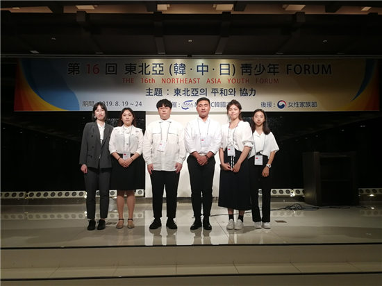 2019年8月19日当天在韩国首尔AW会议展览中心举办“第十六届东北青少年论坛”开幕式,韩国主办方领导以及中日主要领导出席了本次开幕仪式并发表讲话,中华人民共和国驻大韩民国大使馆工作人员出席本次活动,并转达邱国洪大使的贺词,随后韩方准备了文艺表演节目。开幕式上每一个桌位都包含中日韩三国青年,桌上各国青年用英语、日语、汉语、韩语互相交流探讨。