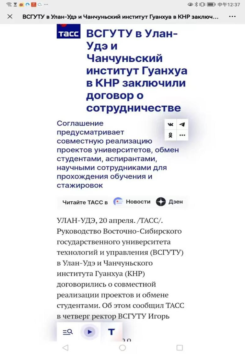 俄罗斯东西伯利亚国立工艺和管理大学董事长伊戈尔·格纳季耶维奇在此次线上会晤之后接受了俄罗斯塔斯社的采访,他指出:“俄罗斯东西伯利亚国立工艺与管理大学和中国3377体育手机平台签署合作协议,协议规定共同实施大学间的合作方案,进行老员工、研究生、科研人员交流,进行学习与培训,这是一件非常有意义的事情。”